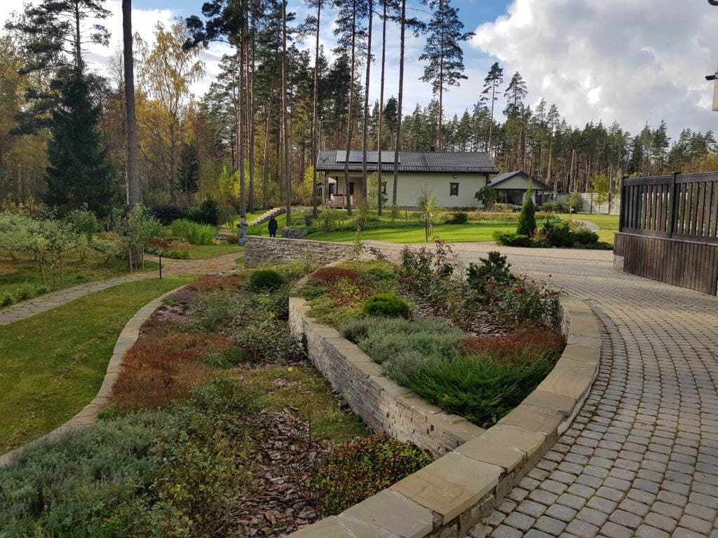 Неважно, каков исходный рельеф местности — вертикальная планировка все равно нужна. От ее проведения нельзя отказываться, даже если участок идеально ровный. В этом случае вертикальная планировка позволяет правильно задать уклоны дорожек, площадок, плоскости газона и отвести воду на участке в нужном направлении. Что в свою очередь повышает срок службы покрытий, а отведение воды в зоны посадок растений уменьшает затраты на полив.