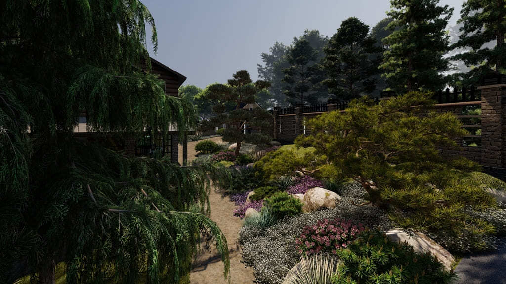 - Размер участка. Если он небольшой, при высаживании растений стоит ограничиться скромным набором видов. В качестве центрального элемента может выступать небольшое дерево. При внушительных же размерах территории важно использовать продуманное сочетание заполненности и пустоты, чтобы не нарушить главный принцип японского сада — принцип гармонии.